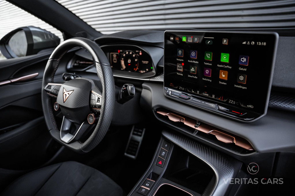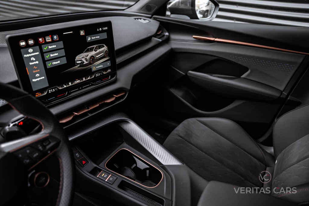 Het exterieur straalt de typische CUPRA-identiteit uit: gespierde lijnen, een scherpe lichtsignatuur en koperkleurige details die direct herkenbaar zijn. De Terramar oogt zelfverzekerd en onderscheidend, of je nu door druk stadsverkeer navigeert of over open wegen rijdt. Zijn moderne aanwezigheid wordt nog verder versterkt door hoogwaardige afwerking en designkenmerken die pure sportiviteit uitstralen.