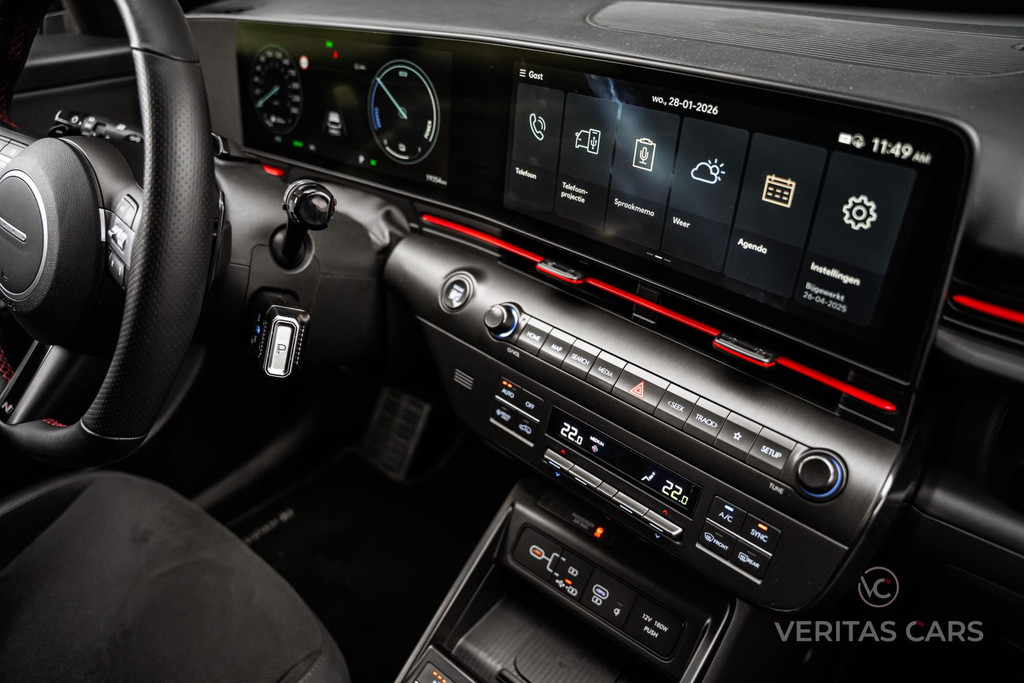 Dankzij de hybride aandrijflijn is de KONA 1.6 GDI HEV N Line niet alleen krachtig, maar ook milieuvriendelijk en zuinig, wat hem de ideale keuze maakt voor wie graag de balans vindt tussen prestaties en duurzaamheid. Het geavanceerde infotainmentsysteem, de slimme veiligheidsfeatures en het comfortabele rijgedrag maken elke rit prettig en gemakkelijk.