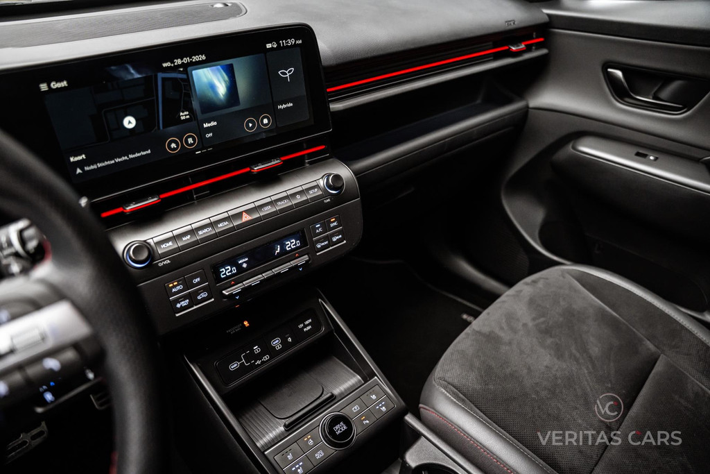 De Hyundai KONA 1.6 GDI HEV N Line is de perfecte mix van sportiviteit, efficiëntie en technologie. Met zijn krachtige 1.6 GDI hybride motor geniet je van soepele prestaties en indrukwekkende zuinigheid, terwijl de sportieve N Line-uitvoering het avontuur op de weg een extra dimensie geeft. Of je nu door de stad snelt of een lange rit maakt, de KONA biedt je het beste van beide werelden: dynamisch rijden en lage uitstoot, zonder concessies te doen aan rijplezier.